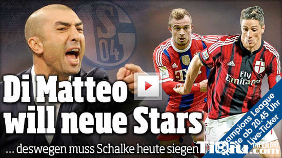 国际足球 时间:2014-10-21 15:41来源:未知编辑:小麦乱来【导读】迪马特奥前不久入主沙尔克04,现在开始着手改造球队了,据德国《图片报》的消息,佛帅希望能在明年1月份签下托雷斯和沙奇里,以补强球队的实力。