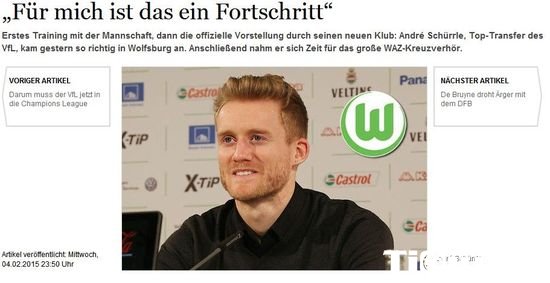国际足球 时间:2015-02-06 15:40来源:未知编辑:小北【导读】北京时间2015年2月6日消息,本赛季冬季转会窗口,德国国脚边锋许尔勒高价加盟沃尔夫斯堡。据德国媒体的消息称,许尔勒的转会费达到了3200万欧元,这也使得他成为沃尔夫斯堡队史最贵的球员,也是德甲联赛冬季转会的历史第一身价。近日许尔勒接受了重返德甲之后的首次专访,许尔勒在采访中表示,从切尔西重返德甲联赛并不是一种失败,他认为这是个人职业生涯的进步。除此之外许尔勒还表示,他在转会前询问了德国队主帅勒夫的意见,勒夫非常支持自己的转会。