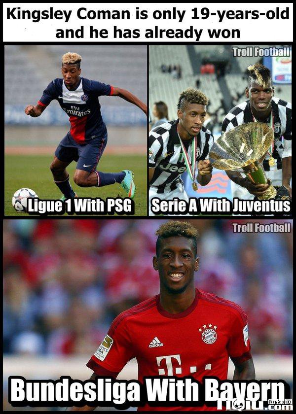 去年的8月底,拜仁成功从尤文阵中租借到科曼,双方合同在2017年夏天到期。虽然拜仁阵中有里贝里、罗本、道格拉斯-科斯塔这样的名将,但是科曼还是获得了22次出场机会,帮助瓜迪奥拉的球队打入4个进球。如今拜仁已经夺得本赛季德甲冠军,这也让年仅19岁的科曼齐集了法甲、意甲和德甲的联赛冠军。