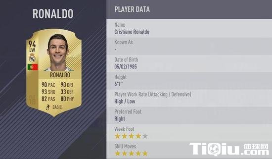 FIFA18能力值公布 C罗高梅西1分居首