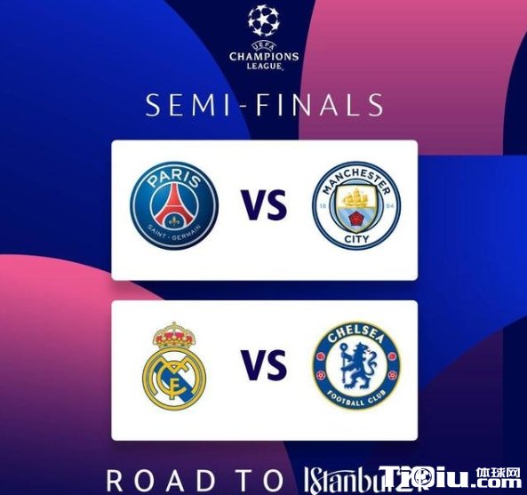 自此,本赛季欧冠四强正式产生!来自英超的曼城与切尔西晋级,落位在两个半区,法甲独苗巴黎圣日耳曼和西甲独苗皇家马德里继续挺进!