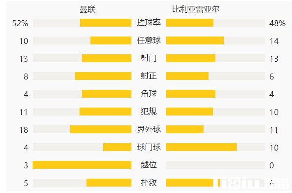 最终,全场比赛结束,曼联在主场以2-1的比分战胜比利亚雷亚尔。