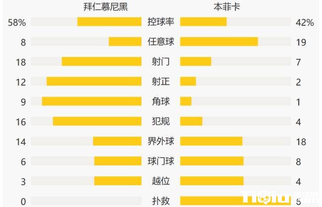 半场结束时,拜仁带着2-1的比分进入到中场休息。