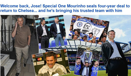 英国的《每日邮报》高举双手欢迎穆里尼奥回归英超:“欢迎回来,何塞!‘特别的一个’穆里尼奥签下4年合同回归切尔西,而且他也带回了球队对他的信任。”《太阳报》也表示:“穆里尼奥回归,切尔西第二次聘请‘特殊的一个’担任球队主教练。”《每日电讯报》则表示:“穆里尼奥已经确定出任切尔西的主教练,他和球队签下了4年的合同。”