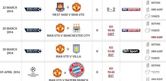 国际足球 时间:2014-03-24 17:22来源:未知编辑:David【导读】拜仁这个德甲巨无霸,欧洲王中王。当然,五冠王还被授予了一个“宇宙仁”的称号,然而巴萨等队却早已成为了过去式。对此,曼联官方似乎也是这么认为,红魔的官方网站上,未来三场赛事的对阵图赫然在列,最引人注目的是:拜仁LOGO被放大了,似乎“小曼联”已经开始主动示弱。
