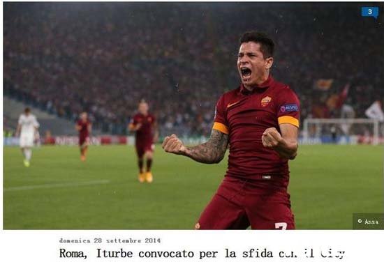 罗马也公布了10月1日客战曼城的大名单,伊图尔贝伤愈复出。这位阿根廷边锋今年夏天2200万欧的身价加盟了罗马,这也是今夏意甲的标王。在首轮比赛中就自己破门了,随后又为队友送出助攻,后来右脚拉伤了,不过幸好与曼城这场关键战中他及时伤愈复出,保证了罗马的攻击力。罗马对这场比赛十分重视,周一就前往了曼彻斯特进行备战。