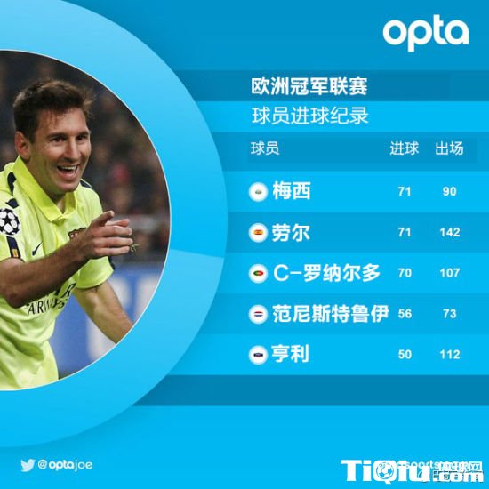 数据解析梅西欧冠71球 某一点比劳尔C罗强太多