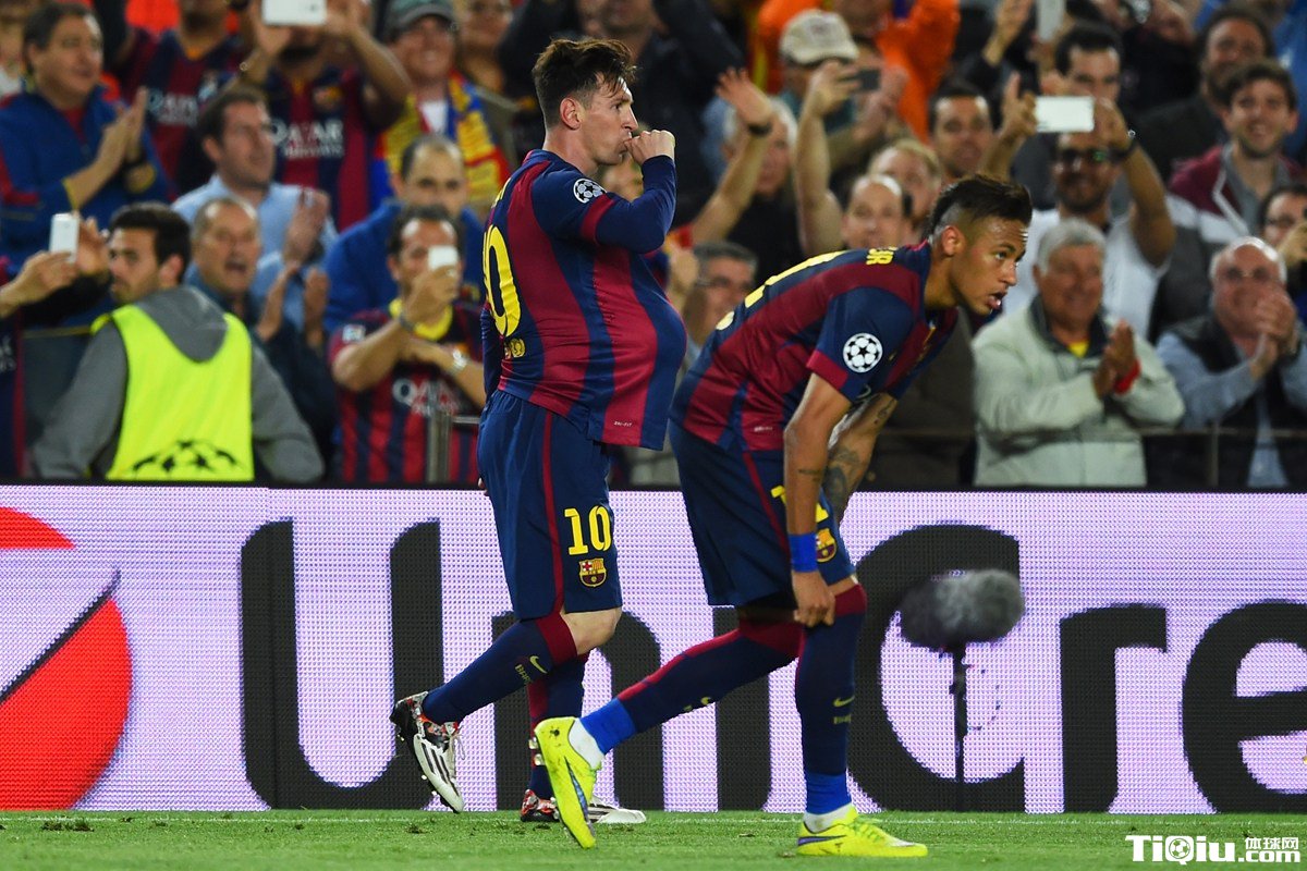 梅西在第77分钟与第80分钟连续破门,这两粒进球犹如给全队派发了定心丸,内马尔自然就是受益者,这也为他终场前单刀破门奠定了基础,内马尔在获得梅西妙传之际,他的处理非常冷静,面对出击的诺伊尔,内马尔不慌不忙推射破网。进球后内马尔纵情庆祝,梅西亦第一时间冲上前去跟内马尔在草地上翻滚撒欢。