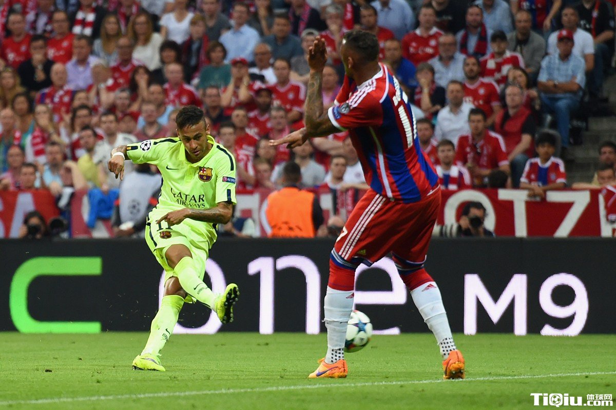 拜仁在第7分钟取得领先,仅仅过了8分钟,内马尔就将比分扳平,当时梅西中路直塞,苏亚雷斯反越位成功并在禁区右侧无私送出横传,内马尔门前及时包抄到位将球打入空门。第29分钟,内马尔再度闪耀,这一回他仍是接到来自苏亚雷斯的右侧传中,对方后卫博阿滕前点拦截未果,内马尔在离门约10码处推射左下角中的。