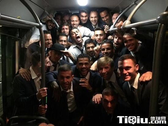 巴萨球员挤大巴晒合影 梅西下令必须捧杯