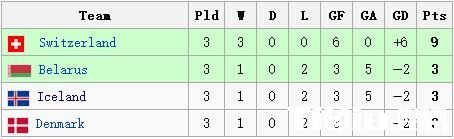 欧青赛中,与冰岛同组的是最终的亚军瑞士,白俄罗斯以及东道主丹麦,最后3支球队同积3分,净胜球和进球数也一样。因为冰岛首战0-2不敌白俄罗斯,所以后者以胜负关系优势晋级,没有出线有运气关系。冰岛打得最好的1场比赛是小组第3轮,3-1击败东道主丹麦,西格索尔松和比亚尔纳松都有进球。