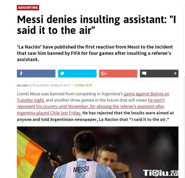 国际足球 时间:2017-03-30 09:49来源:互联网编辑:幽斋悠哉梅西对自己辱骂边裁做出回应