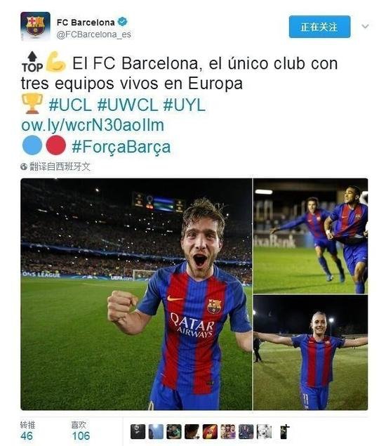 巴萨官推不惧毒奶 自信要当欧冠三冠王