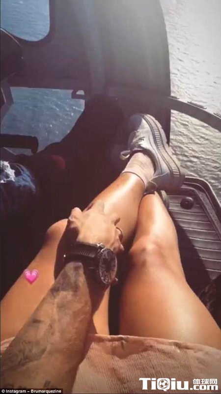 在Ins上,布鲁娜也发了自己和内马尔在飞机上的合影。布鲁娜伸长双腿,内马尔的手放在布鲁娜的大腿上。透过直升机舷窗,能看到碧波荡漾的海洋。