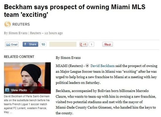 小贝将建大联盟新军 豪投2500万资金自己当老板