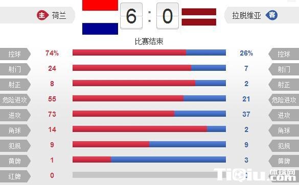 出场阵容:荷兰:1-西莱森/5-威廉斯,2-德弗里,3-布鲁马,2-范德维尔/6-布林德(20' 16-克拉西),7-阿费莱(68' 21-德佩),8-斯内德/9-亨特拉尔,11-罗本,10-范佩西(79' 18-维纳尔杜姆)拉脱维亚:12-科林科/5-加博夫斯,4-杜布拉,20-库拉金斯,13-戈尔克斯/18-菲尔托夫斯,21-A-维斯纳科夫斯,14-伊考涅克斯(46' 5-莱赞斯),17-久金斯(54' 8-考纳)/11-E-维斯纳科夫斯(69' 16-鲁德涅夫斯),10-萨巴拉
