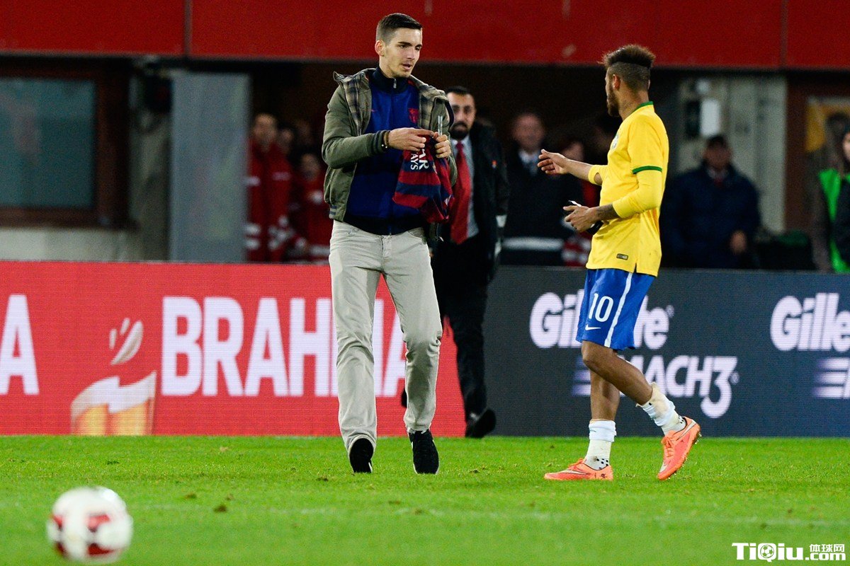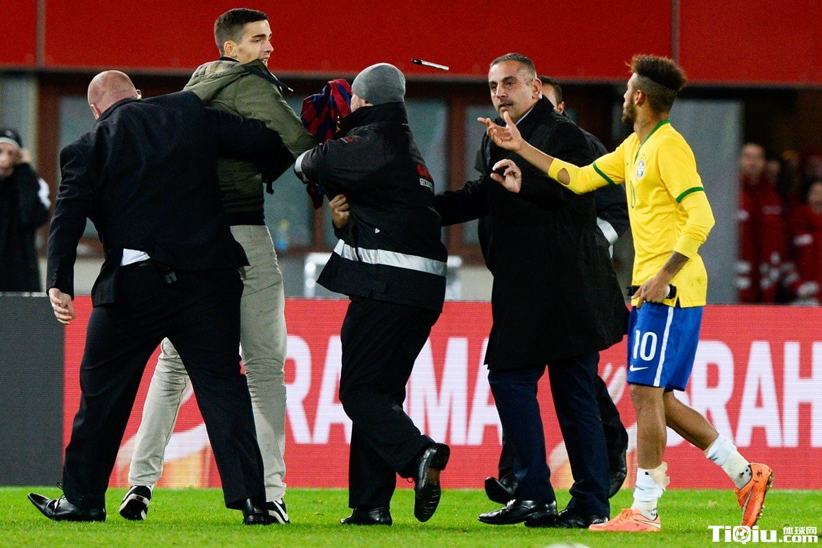 球迷冲入场内希望获得内马尔的签名