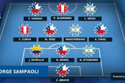 美洲杯最佳阵容 智利5人入选梅西领衔