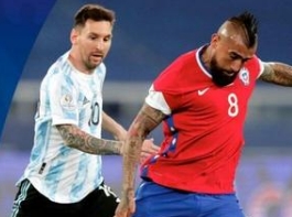 北京时间6月15日5点,美洲杯A组第1轮,阿根廷对阵智利。上半场,劳塔罗和冈萨雷斯先后错失良机,梅西任意球直接破门.下半场,塔利亚菲科送点,比达尔射失点球但巴尔加斯补射打进,全场比赛结束,阿根廷1-1智利。...