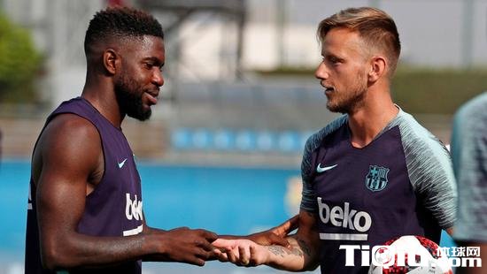 在昨天的训练场上,拉基蒂奇和乌姆蒂蒂握手合影。在世界杯决赛中,两人各为其主,最终拉基蒂奇所在的克罗地亚败下阵来。在社交网络上,拉基蒂奇发了这张合影,并且开起了玩笑。