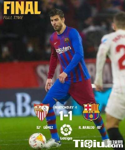 国际足球 时间:2021-12-22 10:37来源:搜狐号编辑:足坛欧美汇北京时间12月22日凌晨4点30分,21/22赛季西甲联赛第4轮迎来一场补赛。在皮斯胡安球场,巴塞罗那客场1-1战平塞维利亚。巴萨积28分升至第7位,塞维利亚积38分排名第二。戈麦斯和阿劳霍上半场先后在角球进攻中破门,孔德下半场被红牌罚下,登贝莱终盘阶段射中门柱。