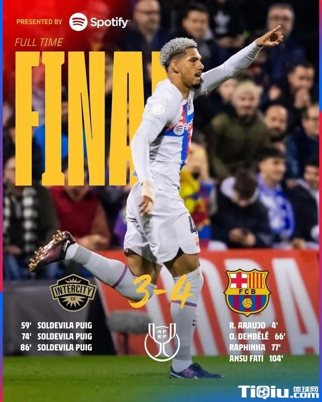 西班牙国王杯赛季 巴塞罗那4-3险胜城际CF