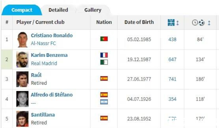 皇马队史射手榜最新排名 C罗打进的最多领跑榜首