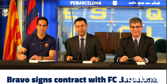国际足球 时间:2014-07-08 11:08来源:未知编辑:ice【导读】北京时间7月7日消息,西甲豪门巴萨官方发布消息智利门将克劳迪奥-布拉沃加盟,他也是继德国门将特尔施特根、中场拉基蒂奇之后,巴萨今夏的第三笔重要引援。