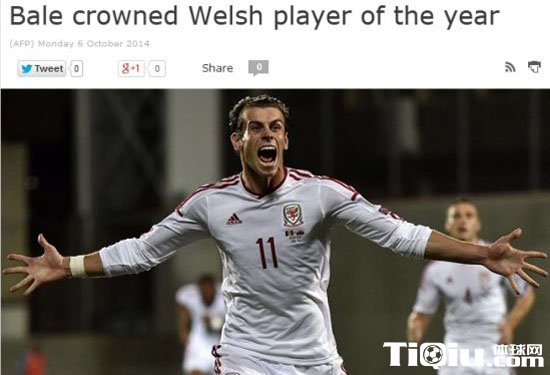 贝尔夺得威尔士足球先生 四度获奖跻身榜首