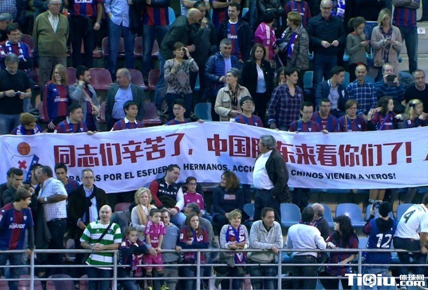 FIFA官网也关注5名中国球迷股东来埃瓦尔看球的事,“埃瓦尔的中国支持者在西班牙巴斯克地区的伊普鲁亚球场合影”,这场比赛的中国元素远不止这些,埃瓦尔现场还打出“感谢所有中国股东对埃瓦尔的支持”字幕。看台上,5名中国球迷拉出横幅:“同志们辛苦了,中国股东来看你们了!”也是相当惹眼。