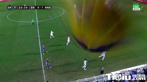 拉莫斯的大脚解围直接踢爆了摄像头