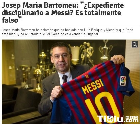 有消息称恩里克要求对梅西进行纪律处罚,巴托梅乌否认:“这是假的,我不知道是谁说的,这种想法会伤害球队。我和梅西、恩里克都谈过,我也和其他球员交流了,一切都很好。”巴托梅乌还怀疑有对手故意使坏。