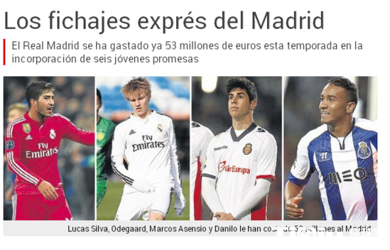 西班牙媒体指出,两名委内瑞拉球员戈多伊和马西亚斯加盟皇马就可能违规,不得已皇马放弃了两人。众所周知的是,巴萨因为引进小球员违规被FIFA重罚,导致宇宙队在2015年的两个转会窗口无法引援。因此,《每日体育报》判断,皇马如此不遗余力的突击引进青年才俊,就是应付可能的转会禁令,而这种未雨绸缪是非常有必要的。否则的话,一旦国际足联处罚皇马,弗洛伦蒂诺肯定措手不及。