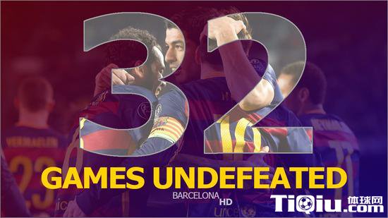 目前,在西班牙足球的历史上,排在巴萨前面的只有88/89赛季的皇马,当时本哈克执教的皇马连续34场比赛没有输球。进入2016年以来,巴萨15场比赛13胜2平,这也是巴萨队史自然年最佳开局。