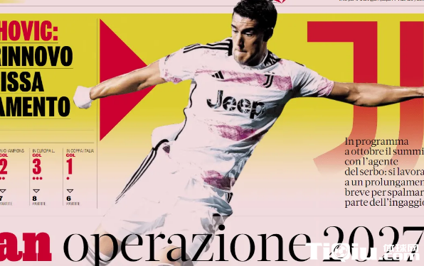出于技术层面和经济层面的双重原因,尤文技术总监吉恩托利和体育总监曼纳会在九月份亲自与弗拉霍维奇的随行人员商谈合同问题,目前尤文管理层的初步想法是与球员方面进行沟通,尝试能否将合同延后一年(至2027年到期),然后将工资进行分摊,这样可以降低摊销金额以及尤文每年付出的薪水成本。