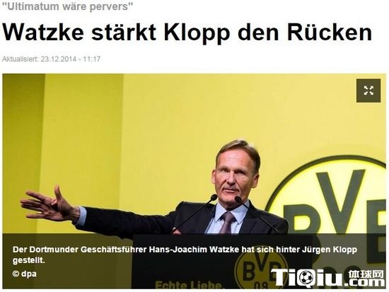 国际足球 时间:2014-12-25 16:53来源:未知编辑:小北【导读】北京时间2014年12月25日消息,在冬歇期前最后一轮联赛的副班长之争中,多特蒙德客场1-2输给了不莱梅,在积分榜上被对方超越,排名联赛倒数第二。此前《图片报》调查显示,已经有将近四成的球迷要求多特蒙德主帅克洛普下课,不过多特高层依然力挺这位功勋教练,继体育主管佐尔克之后,多特CEO瓦茨克同样站出来公开表达了对克洛普的信任。
