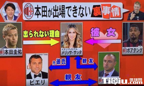 有趣的是,日本媒体日前披露,布罗基不用本田,使用博阿滕,这是因为布罗基和博阿滕的女友梅丽莎关系很好……这令人哭笑不得的传闻,究竟是真是假,不好分辨。但今天本田圭佑证明,布罗基确实犯了错,这却是事实。