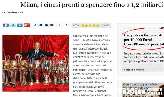据之前的报道,已经有一个来自中国企业的调查小组对米兰的账目进行了职责内的调查,双方已接近达成一致。而根据《米兰财经报》的最新报道,中国企业的投资总额将达到12亿欧元。