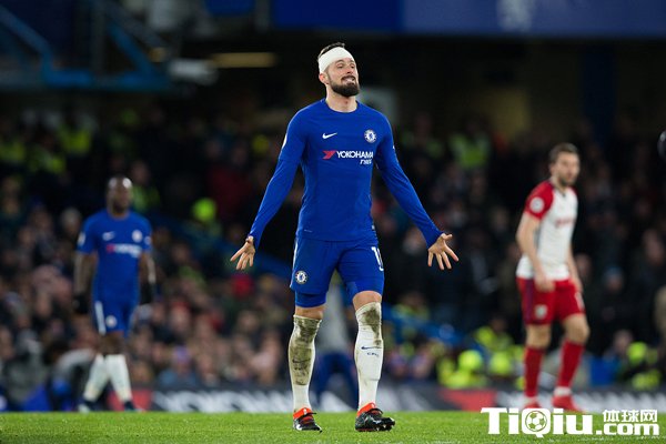 第37分钟,吉鲁在争顶倒地后被对方赫加奇的鞋钉挂了一下,后脑勺流血,队医出场对其进行了包扎。第42分钟,扎帕科斯塔禁区外射门,福斯特拿到球。第45分钟,佩德罗右路传中,吉鲁头球偏出。补时阶段,隆东一脚远射偏出。随后,吉鲁中场拿球被埃文斯踢到小腿,法国人痛苦倒地,埃文斯吃到黄牌。上半场,切尔西1球领先。