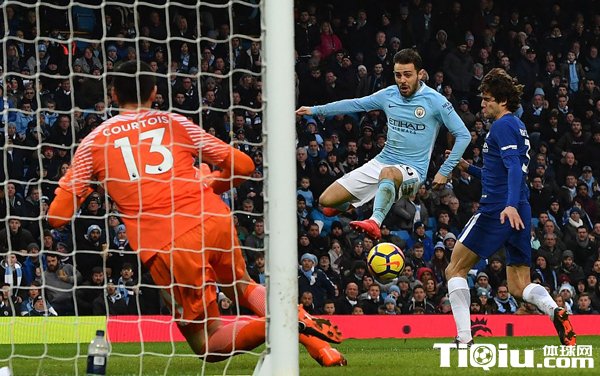 第27分钟,曼城前场右侧的任意球机会,德布劳内右脚弧线球旋到禁区远端,萨内凌空卸球的同时闪开防守空当,右脚劲射穿过库尔图瓦的十指关,但皮球被补门的阿斯皮利奎塔挡出。第42分钟,丁丁右侧任意球再次发出,阿圭罗高速前插低射球门远角,奥塔门迪零度角铲射破空门,但边裁举旗示意阿kun越位在先,进球无效。上半场战罢,蓝军竟然0射门。