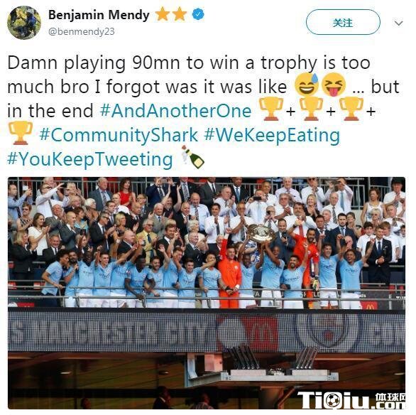 虽然门迪只踢了8场比赛,但今年他拿到了4个冠军。除了英超、世界杯和社区盾,他还有一个联赛杯冠军。