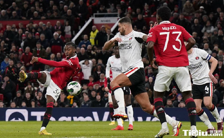 第32分钟弗雷德禁区前横向晃动摆脱被放倒获得任意球,弗雷德主罚前场中路任意球,弧线球绕过人墙后击中立柱弹出。第35分钟查尔顿快速反击,那苏兰中路连续盘带被放倒,阿尔比主罚稍稍偏出,第42分钟,加纳乔左路持球推进,单车晃动后突入禁区左脚爆射高出横梁。上半场战罢,曼联凭借安东尼进球1-0暂领先查尔顿。