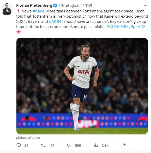 天空体育:热刺对凯恩的续约很乐观