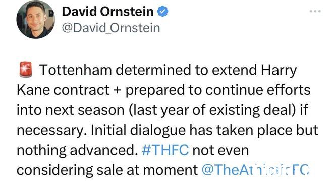 据TA的名记David Ornstein的最新消息,热刺与凯恩的合同即将进入最后的1年,但俱乐部高层并没有考虑出售他,而是决心与凯恩达成新的协议,让他留得更久。热刺高层全部的重点就是延长与凯恩的合同,如果有必要,他们准备在2023-24赛季继续努力。据悉,双方已经开始了初步的续约对话,不过目前还没有进展。