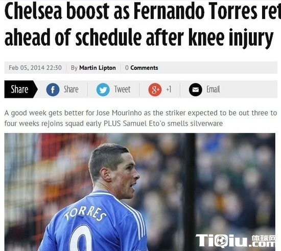 国际足球 时间:2014-02-07 10:10来源:http://gjzq.tiqiu.com编辑:小伍哥【导读】攻克伊蒂哈德球场后,切尔西完成双杀曼城的壮举,同时也将蓝军重新拉回争冠集团,目前与蓝月亮同分,仅落后领头羊阿森纳2分。在这个节骨眼上,穆里尼奥又收到好消息:托雷斯已经恢复训练,有望提前复出。