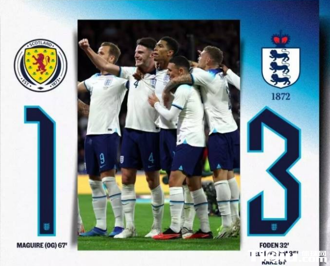 北京时间9月13日凌晨02时45分,一场国际热身赛在英国汉普登公园球场展开角逐,英格兰客场挑战苏格兰,上演英伦德比。第32分钟,沃克射门打在福登身上折射入网,英格兰1-0领先;3分钟后,贝林厄姆利用苏格兰后防线失误再下一城。罗伯逊第67分钟制造马奎尔乌龙球,帮助苏格兰扳回一分。第81分钟,贝林厄姆助攻凯恩破门,帮助英格兰最终以3-1的比分击败苏格兰,赢得英伦德比战。