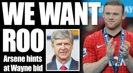 国际足球 时间:2013-06-06 16:48来源:http://gjzq.tiqiu.com编辑:体球《太阳报》头条:温格渴望得到鲁尼