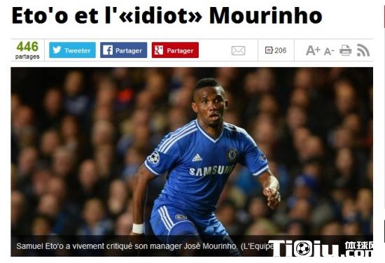 埃托奥信心爆棚 怒骂穆帅是蠢货