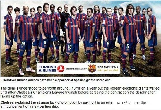 切尔西与三星的赞助合同本赛季结束就将到期,为了是球队拥有更强的购买力,切尔西也在积极接触其他赞助商。来自《每日邮报》的消息,经过切尔西球队的精细挑选,土耳其航空公司可能会与之牵手。据了解,土耳其航空公司是欧洲第四大航空集团,这几年已经与多家球队和个人建立了合作关系。其中不乏巴萨、曼联等球队,科比和梅西的赞助商也是土耳其航空公司。