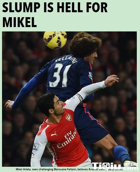 国际足球 时间:2014-11-25 11:08来源:未知编辑:小北【导读】北京时间2014年11月25日消息,本轮英超联赛备受瞩目的“枪魔大战”中,阿森纳坐镇主场占尽优势却被效力更高的曼联击败,队长阿尔特塔称他们踢出了本赛季最好的一场比赛,枪手众将都对输球感到震惊,他认为结果对球员和球迷都是不公平的。